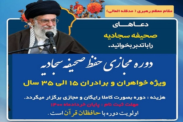 پهلوانی عنوان کرد: مدتزمان برگزاری دوره از اول تیرماه تا دهم شهریور سال جاری بوده و افراد جهت شرکت در این دوره باید مشخصات کامل خود را به همراه شماره تماس به سامانه 10008940761 ارسال کنند. آیین اختتامیه دوره مجازی حفظ صحیفه سجادیه نیز همزمان با برگزاری یازدهمین کنگره بینالمللی امام سجاد(ع) در ۲۵ محرم برگزار خواهد شد.