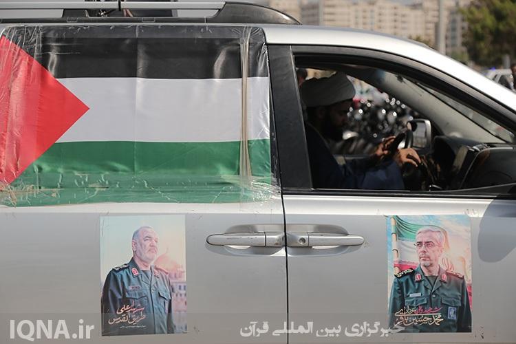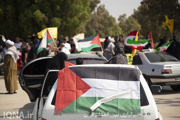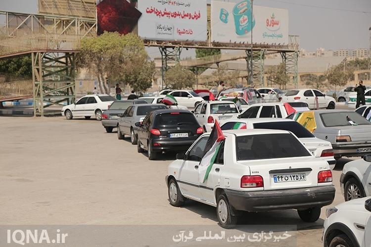 کاروان مردمی در حمایت از ناوگان صمود امروز ۴ مهرماه، از نماد پرچم ایران در پارک غدیر به سمت گلزار شهدای بندرعباس حرکت کردند.